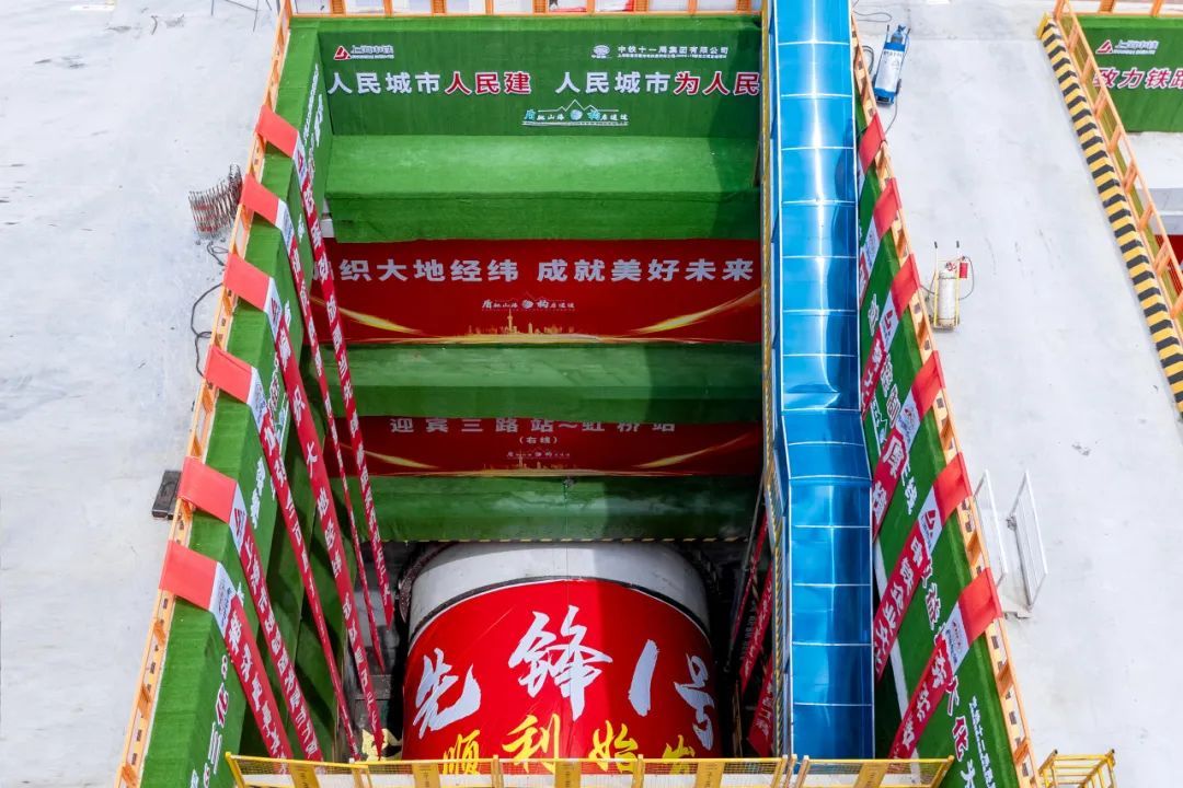 “结合现场实际情况,区间采用两台9米级土压平衡盾构机进行施工,双线均由迎宾三路站始发,推进至虹桥站接收井。”上海申铁相关负责人介绍,其中“先锋1号”盾构机负责区间右线推进,另一台“先锋2号”盾构机负责区间左线推进,目前已经调试完成。