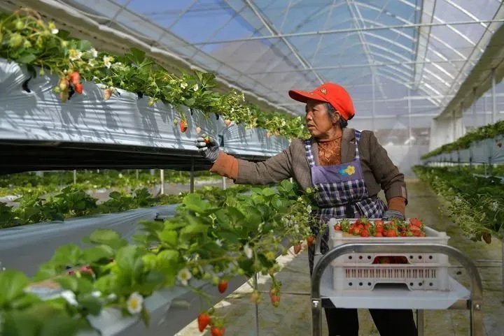 会泽县待补镇人大主席蒋全松介绍,待补镇用好沪滇协作帮扶项目资金,将资金“活水”引入到这里的草莓园,在满足乡村产业发展需求的同时,为农户增收致富添动力,助力乡村振兴。