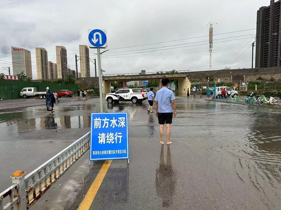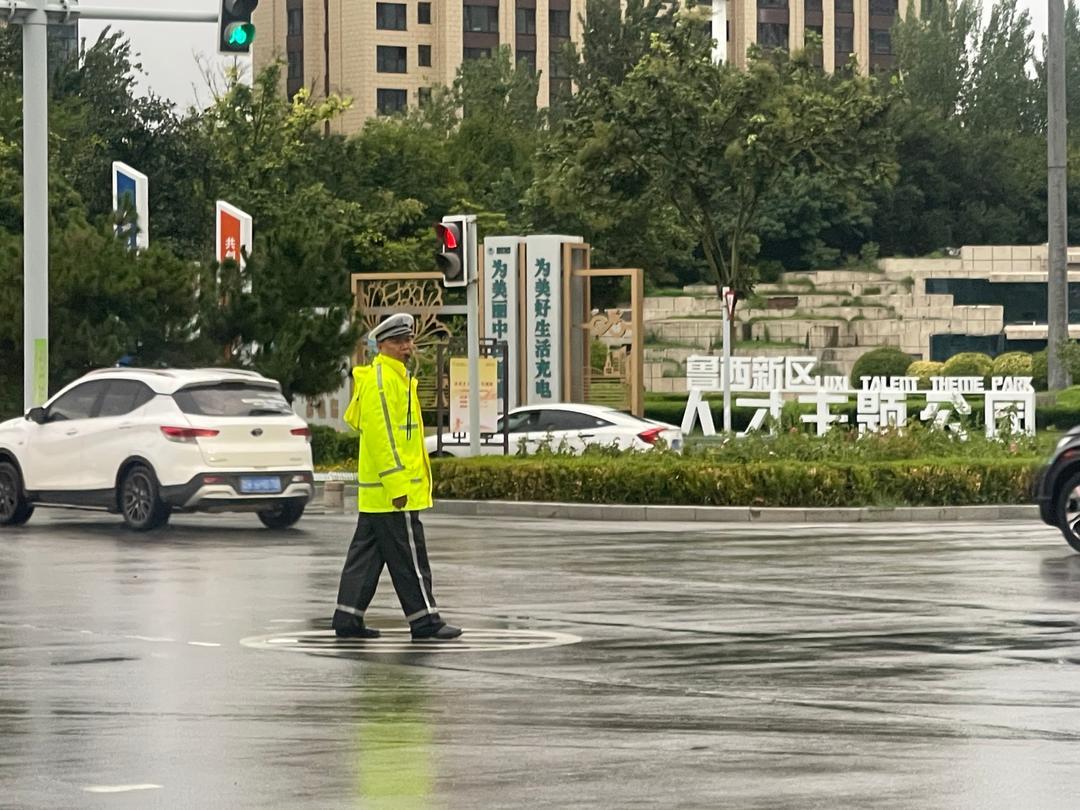 7月5日下午,菏泽城区出现强降雨天气,部分路段出现积水情况。为保障广大群众平安出行,交警直属一大队以雨为令,闻雨而动,结合辖区实际在主要路段及重点路口科学布警,主动出击,雨中坚守执勤一线,全力为群众出行营造安全、有序、畅通的道路交通环境。