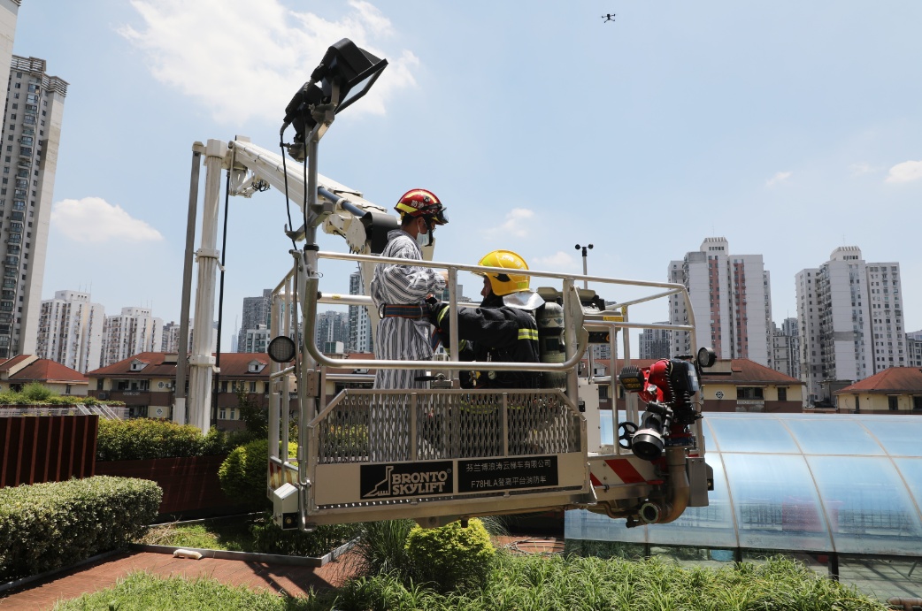 此次演练模拟了医院发生火情后,静安区中兴消防站出动两辆消防车进行高空救援和火势控制,医院工作人员按照紧急预案各司其职,第一时间配合消防员控制火情,组织人员有序疏散至安全区域,并开展初期火灾扑救、伤员急救演练等。