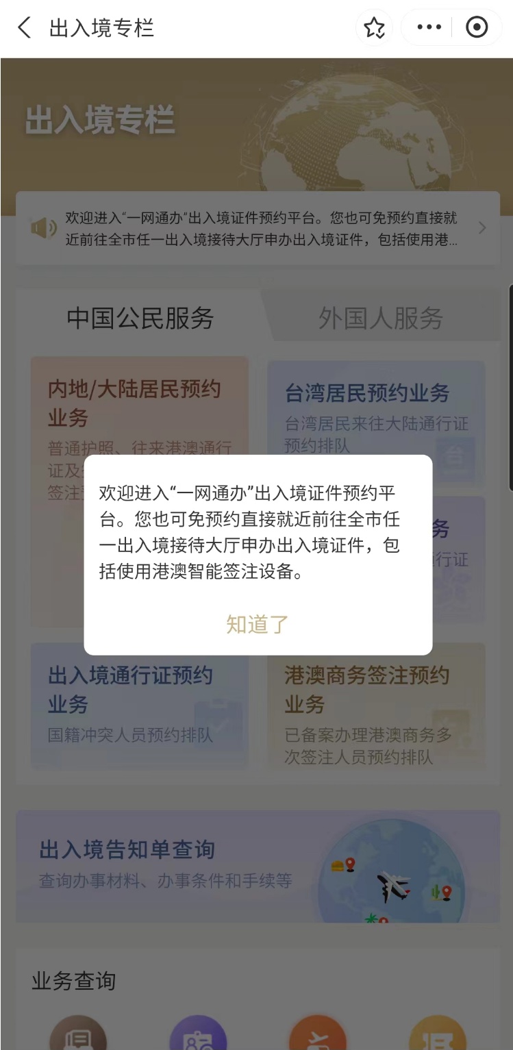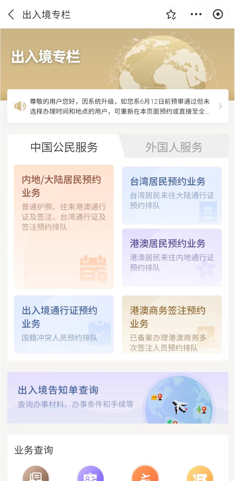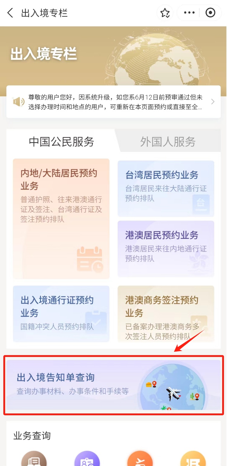 温馨提示:“出入境专栏”还提供出入境告知单查询、业务查询等服务,计划出境游的朋友们赶快来试试吧~