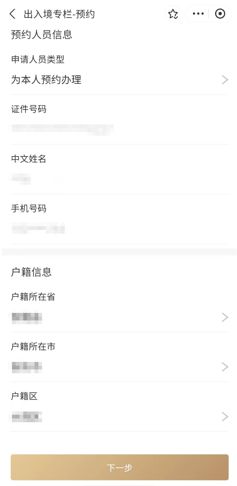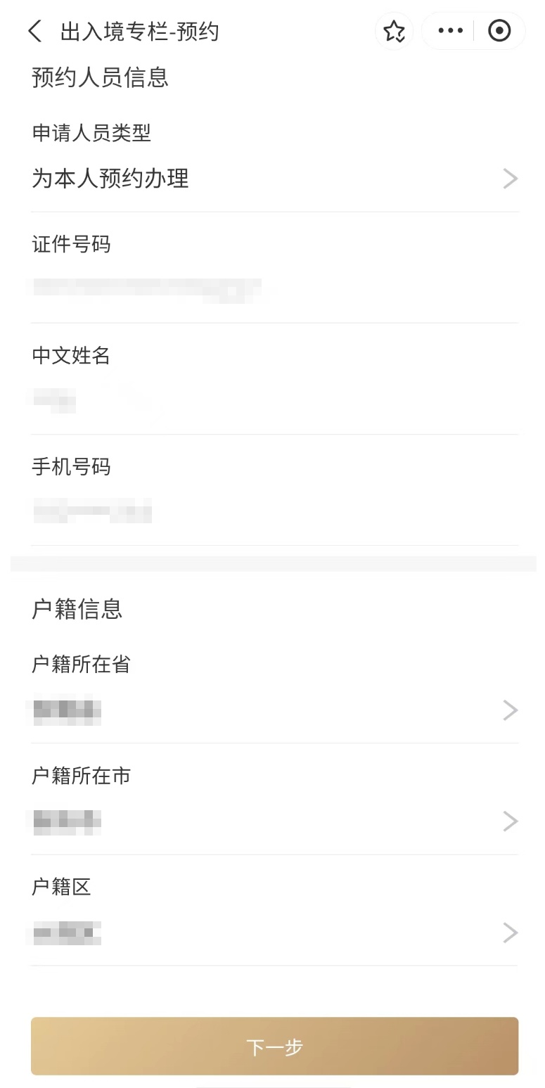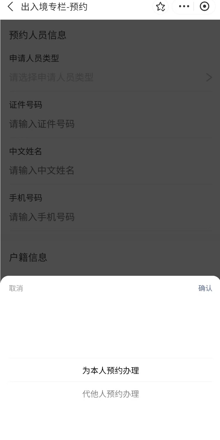温馨提示:如为本人预约办理,系统将自动获取申请人基本信息;如代他人预约办理,需手动填写申请人身份证号、姓名、手机号码等信息。