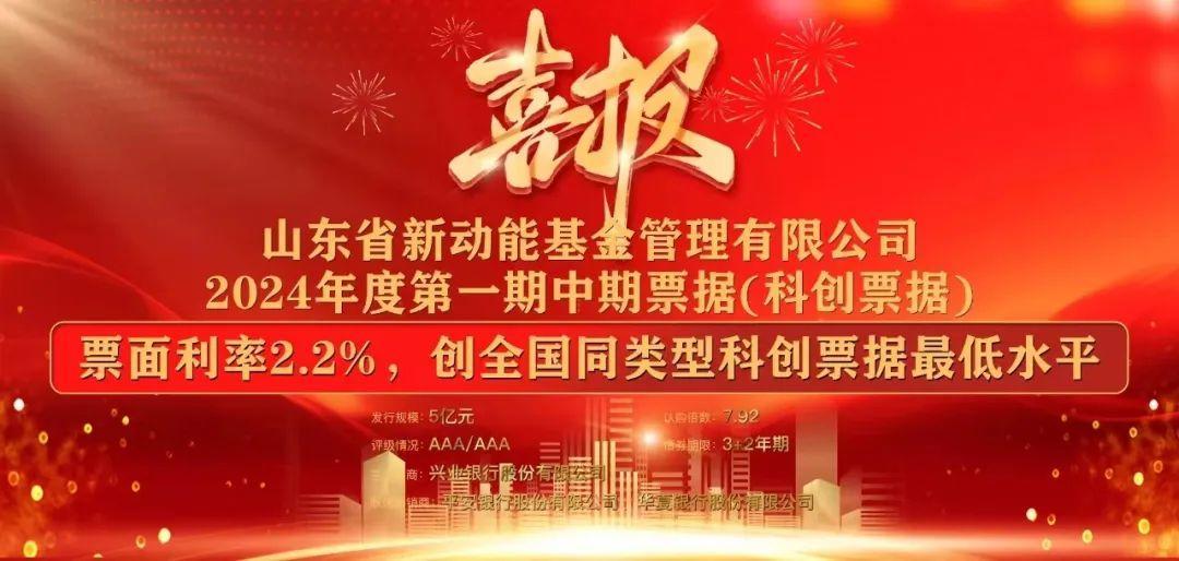 记者从山东省新动能基金管理有限公司(以下简称“省新动能基金公司”)了解到,省新动能基金公司2024年度第一期中期票据(科创票据)近日成功发行,发行规模5亿元,期限3+2年,认购倍数7.92倍,票面利率2.2%,创全国同类型科创票据最低水平。