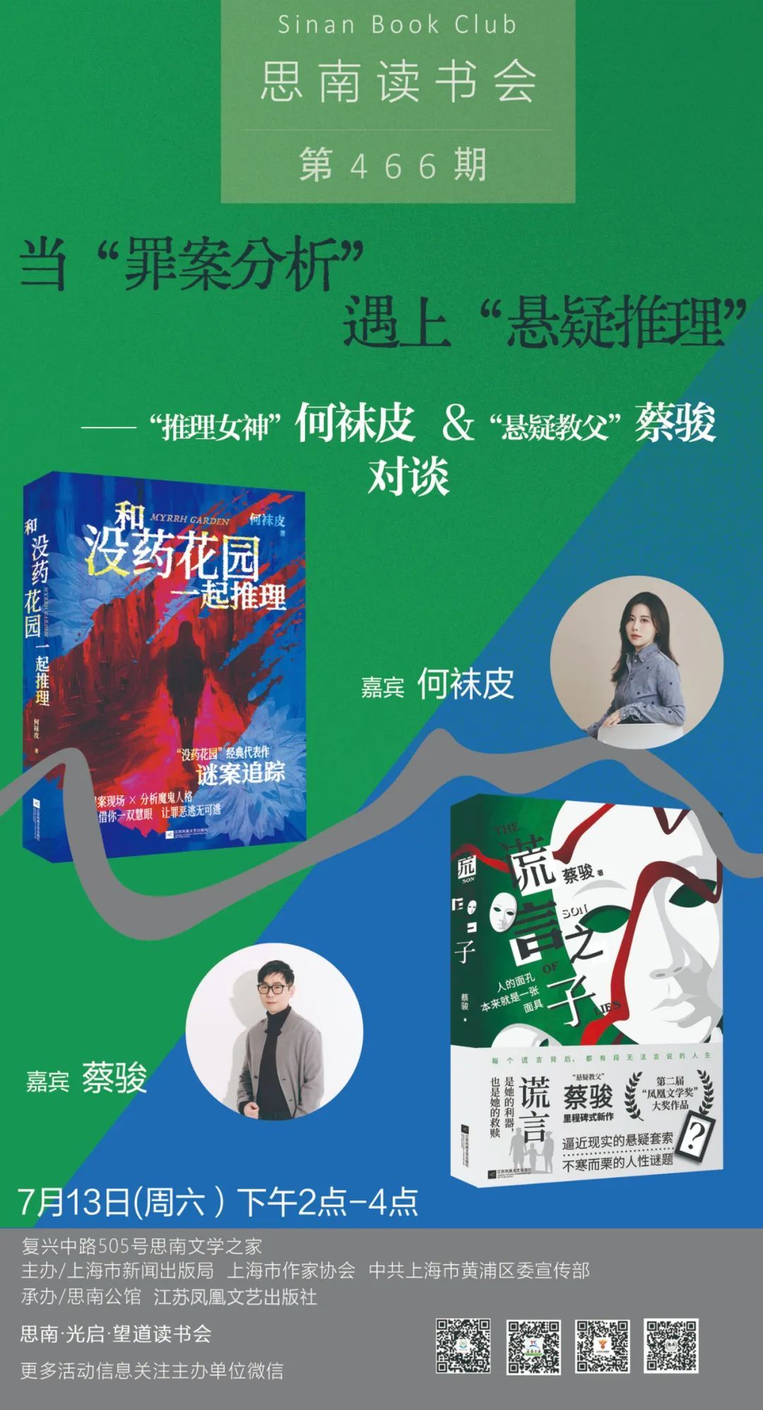 主题:当“罪案分析”遇上“悬疑推理”——“推理女神”何袜皮&“悬疑教父”蔡骏对谈