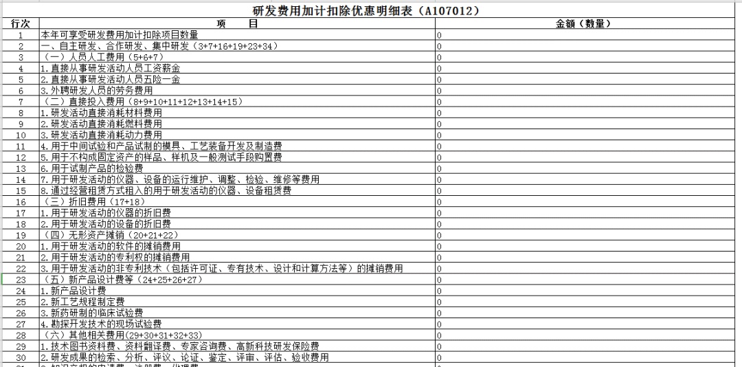 3.应根据享受加计扣除优惠的研发费用情况,准确填报《研发费用加计扣除优惠明细表》(A107012),并与规定的其他资料一并留存备查。