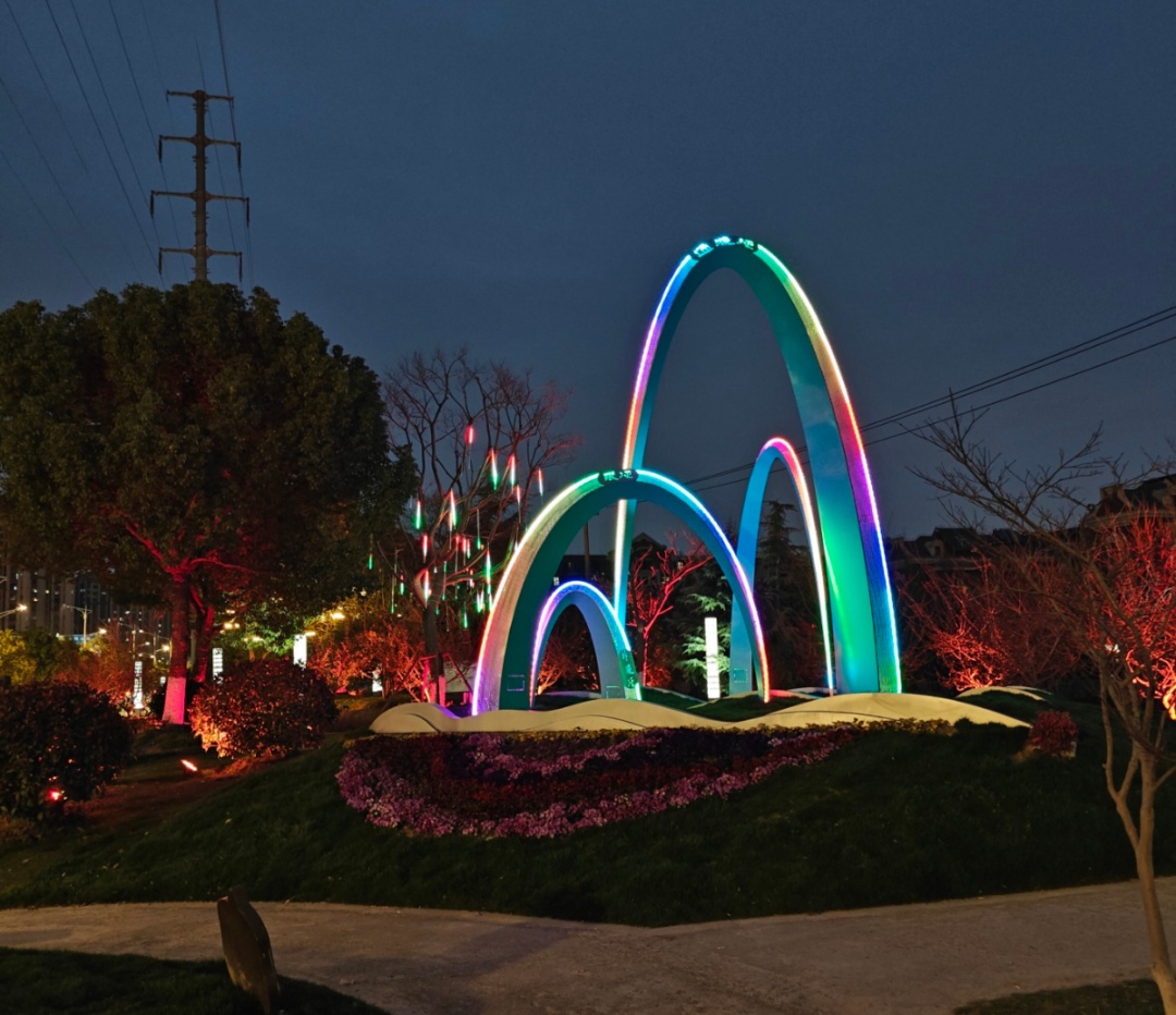 此外,以泗泾塘水系为轴,完成泗泾塘二期滨江步道、泗滨绿地灯光亮化工程,用夜景灯光串联起泗泾这座城市的“古往今来”。