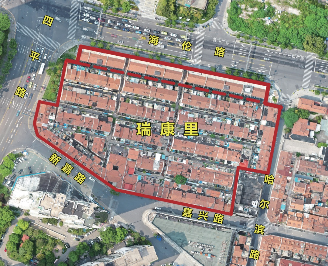 项目涉及居民693户,地块内建筑为旧式里弄,房屋老旧,居住拥挤,消防隐患较大,居民对城市更新意愿强烈。基于增进民生福祉、消除安全隐患、保护历史风貌、疏解城区人口、提高生活品质、优化城市功能等多维度目标,虹口区瑞康里探索新形势下的城市更新新模式、新机制、新路径。