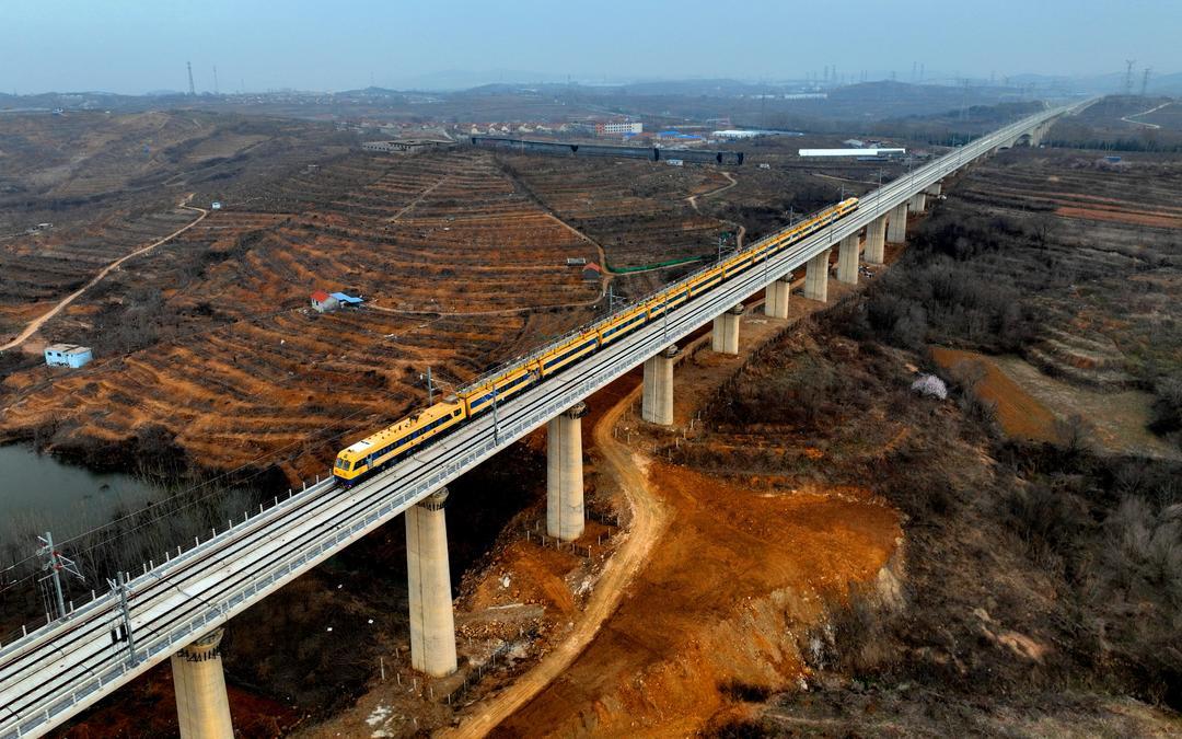 2024年3月23日,为了确保潍烟高铁接触网施工质量达到热滑要求,接触网检修列在潍烟高铁蓬莱至烟台区间进行检修、检测作业。