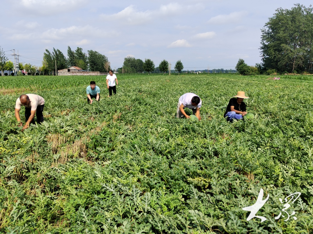 村民在采摘西瓜。