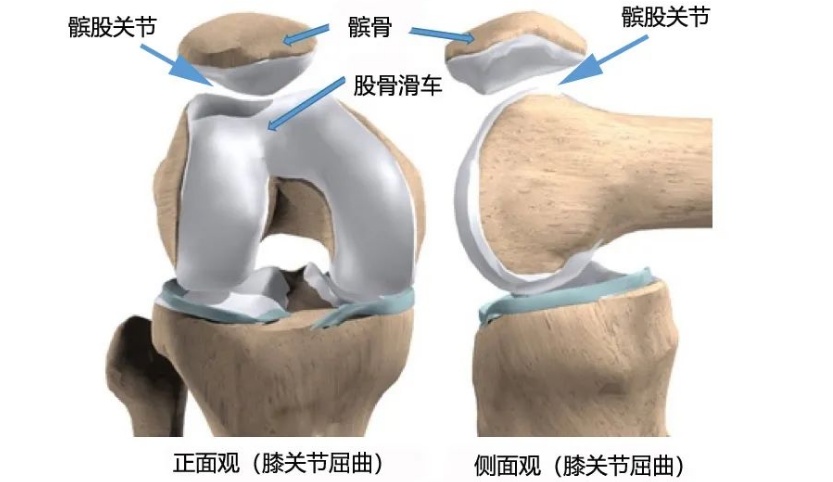 髌骨位于大腿前面,是一块三角形的扁平骨头,与股骨之间通过软骨组织相连,形成了髌股关节。髌股关节在人体的下肢中起着重要的支撑和运动功能。