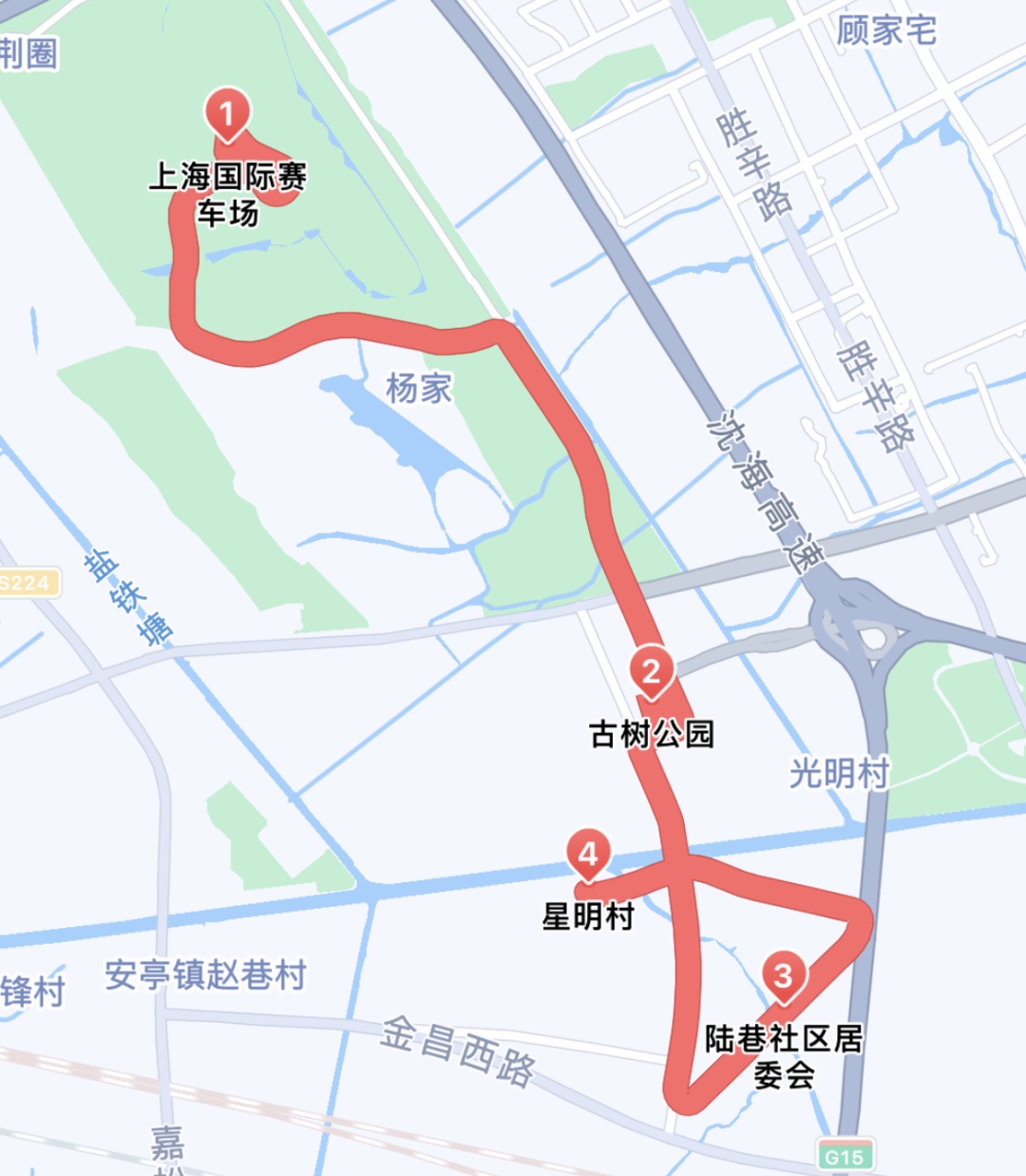 上海国际赛车场→古树公园→陆巷社区—星明村