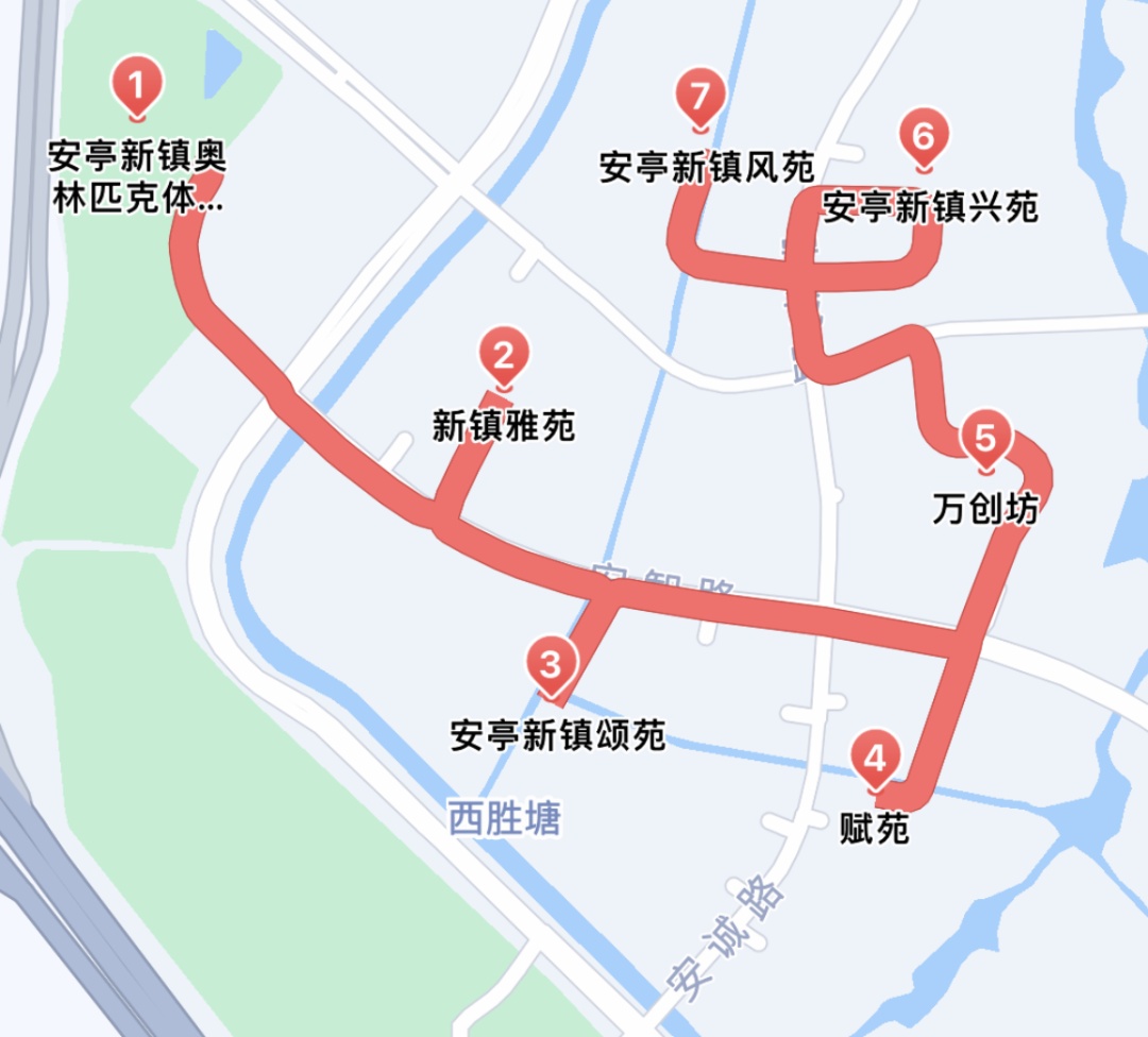 奥林匹克体育公园—新镇雅苑—新镇颂苑—新镇赋苑—万创坊—新镇兴苑—新镇风苑