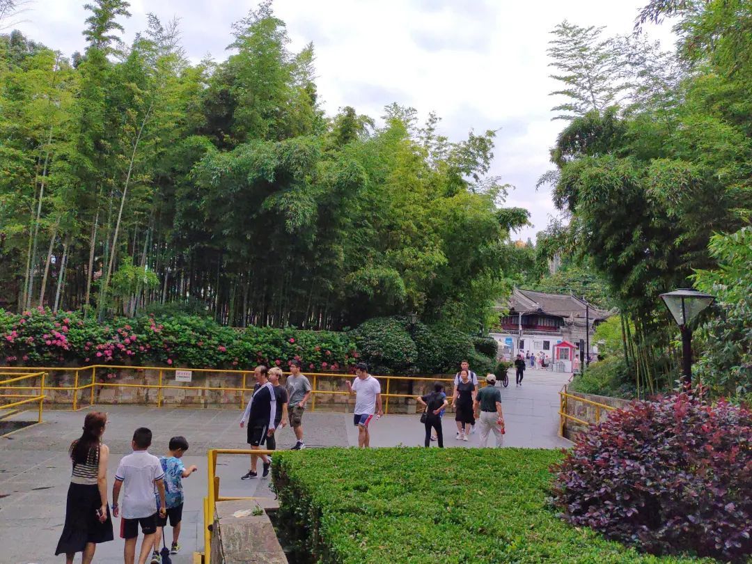园内假山叠翠、瀑布飞溅,移步换景之间,亭台楼阁和小桥流水自然构成传统与现代风格兼具的园林画卷,耳畔又有江水滔滔之声不绝,叫人心旷神怡。