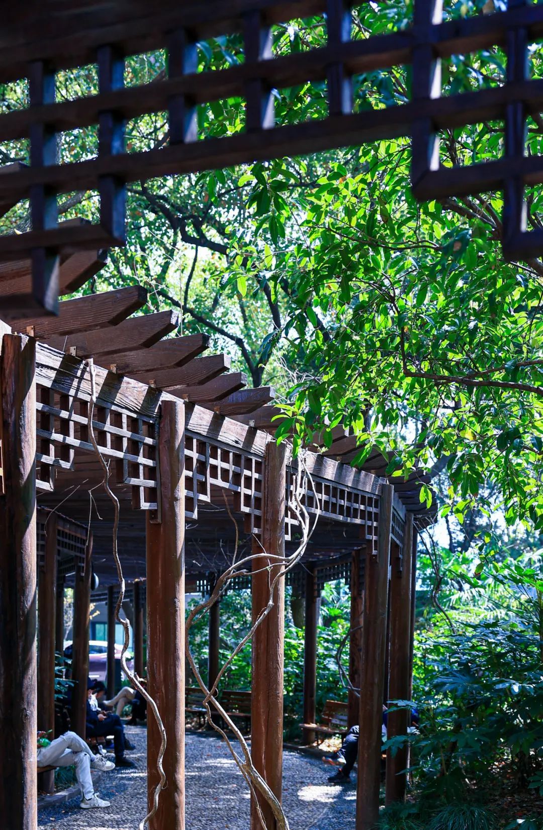 古色古香的蓬莱公园,就像是藏匿于繁华闹市中的一处“桃花源”。飞檐白墙、亭子长廊、假山绿水、蜿蜒小路,坐在古色古香的长亭下,轻风微拂,举目皆美景,无疑是一种极佳的享受。