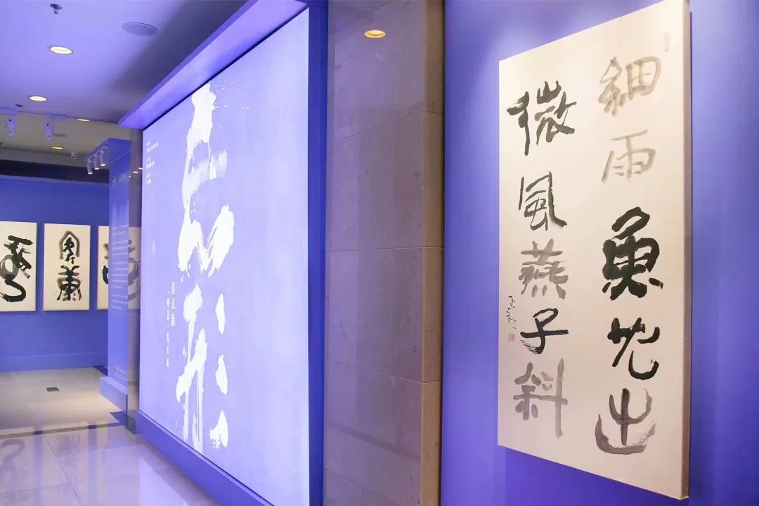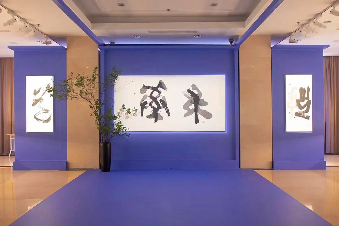 本次书法展还大胆地选用“长春花蓝”作为展陈主色调,寓意以勇气十足的风貌激发个人的创意与创作力,与杨正新的艺术创新态度相得益彰。