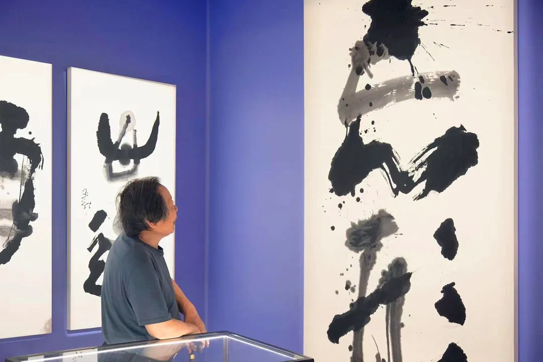 在他的书法作品中,最时髦、最有趣的绘画语言和最严肃、最传统的文字被结合在一起,通过夸张的线条波折、墨色浓淡、结体变化和构架组合,以极富中国画特质的当代美学把汉字的抽象意念和内在精髓“画”出来。