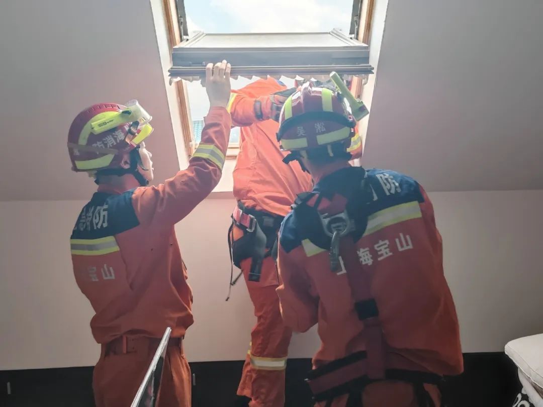 面对这一紧急情况,华浜二村居委迅速响应,第一时间来到相关居民家中,征得居民同意后,拨打了119,请求专业技术支持和紧急救援服务。吴淞消防救援站立即启动应急机制,与淞南派出所协同作战,以最快速度赶往现场。