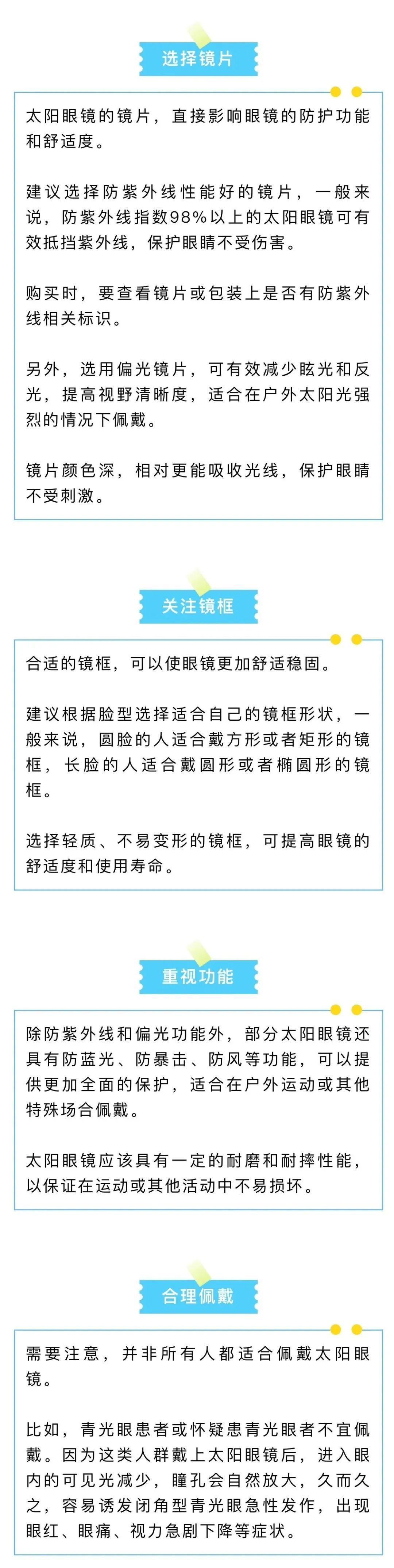入伏后,高温天气越来越多。当阳光强烈时,太阳眼镜可有效抵挡紫外线和强光,保护眼睛免受损伤。在选择太阳眼镜时,需要特别重视哪几点?