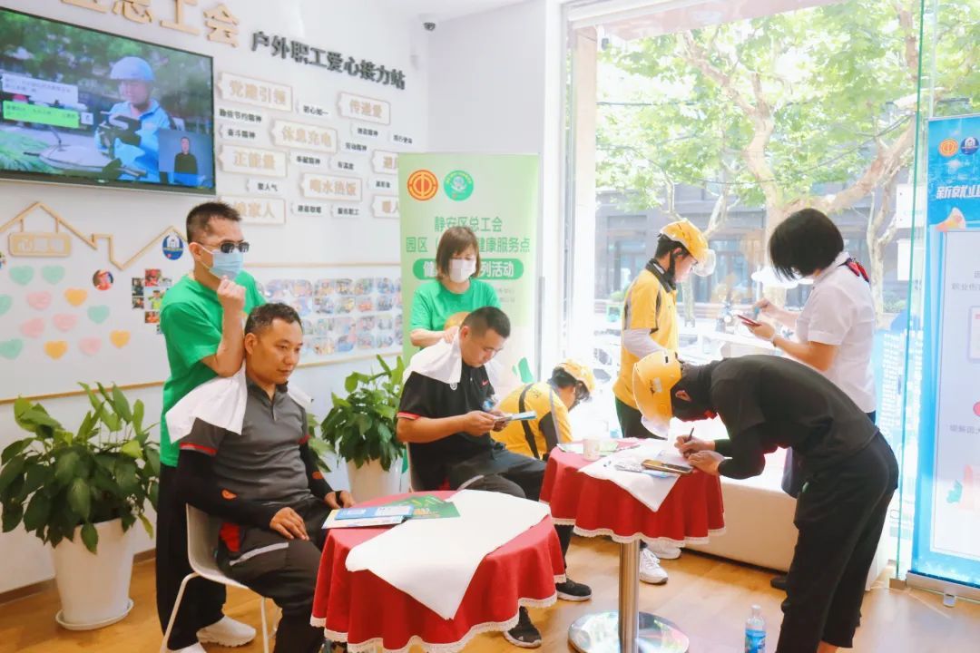 有冰镇饮品解酷暑、有专业按摩缓解疲劳、还有法律咨询和政策解读服务……静安区总工会职工服务中心与片区美团联合开展的“717骑士节”主题活动让外卖员直呼“贴心”。7月17日—19日,各大平台的外卖配送员、快递员等均可进入静安区总工会职工服务中心享受服务。
