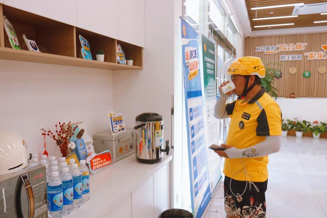 除提供冷热饮水、免费充电、应急用药等服务外,还能满足户外职工就餐、休憩、阅读等多种需求。