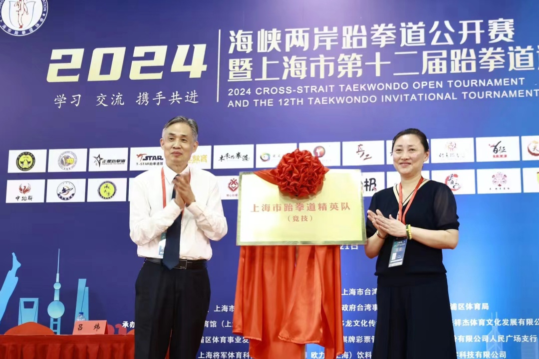 而在开幕式过后,现场举行了上海跆拳道精英队的揭牌仪式。黄浦区体育局局长沈云和上海市跆拳道协会会长陈晓峰正式为精英队揭牌,这标志着上海市跆拳道精英队的正式启航。