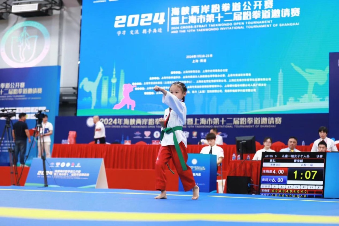 近来,申城酷热难挡,不过相比室外的高温天,室内体育场馆的氛围似乎更燃。记者在现场注意到,参赛者的家长们将偌大的看台几乎坐得满满当当,手持各种助威工具为小选手们鼓劲。参赛者们以矫健的身姿和精湛的技艺,为观众们呈现了一场场精彩的比赛。观众席上的加油声此起彼伏,营造出了浓厚的比赛氛围。“孩子今年10岁,学习跆拳道也有两年多了,这次很高兴能有这样一个平台与各地的朋友切磋技艺,即便再热我也要赶过来参与孩子的成长,希望今后能多多举办类似的活动,孩子也有机会结交到更多的朋友。”一名家长说道。