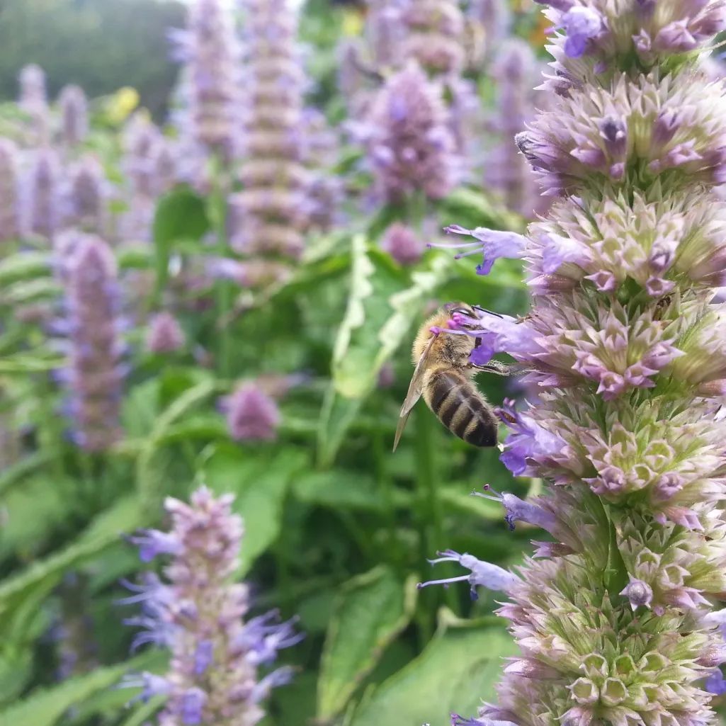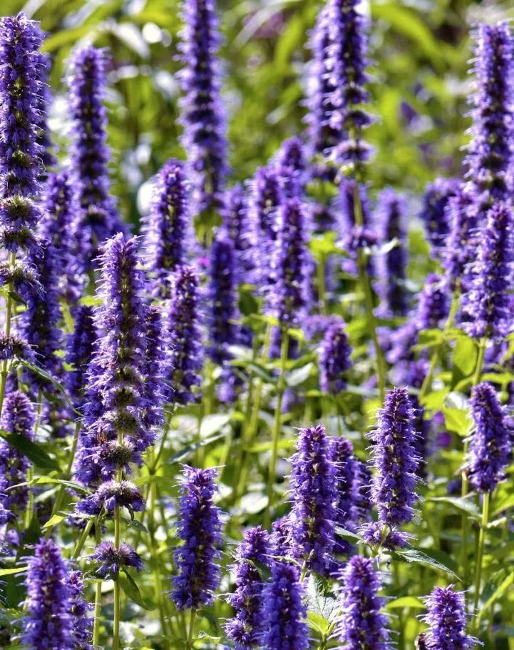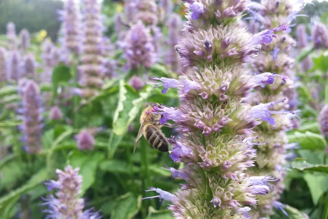 好巧不巧,藿香的花期正处于盛夏,蓝紫色的花朵排列成蜡烛般的长穗,挺立的株型赋予了藿香强烈的线条感,让它们在景观中树立起一条条蓝色直线。看来这种植物不仅仅从味觉上,视觉上也能给予观赏者极大的清凉感。它们的花朵不只有好看,还有丰富的花蜜吸引蜂蝶造访,从而提升景观中的生物多样性。基于观赏、生态,以及芳香等多种原因,藿香成为了许多景观设计师喜爱的植物,在设计时特意引入它们,成为夏日风景线的一员。
