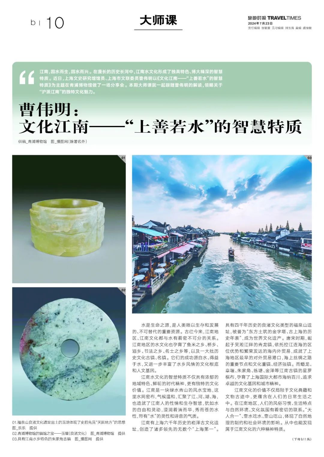 江南,因水而生,因水而兴。在漫长的历史长河中,江南水文化形成了独具特色、博大精深的智慧特质。近日,上海文史研究馆馆员、上海市文联委员曹伟明以《文化江南——“上善若水”的智慧特质》为主题在青浦博物馆做了一场分享,本期大师课就一起跟随曹伟明的解读,领略关于“沪派江南”的独特文化魅力。