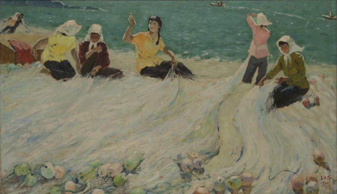 王玉萍《织网女》51×99cm 1980 山东美术馆藏