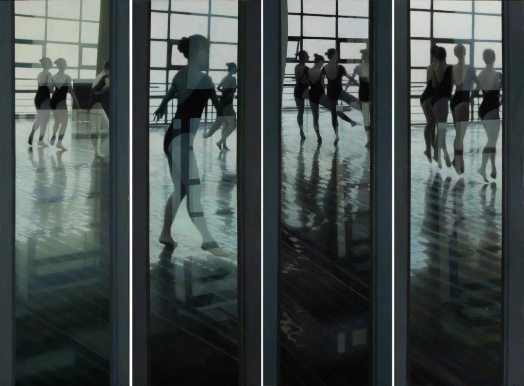 温兴兴《天鹅湖》180×60cm×4 2014 山东美术馆藏