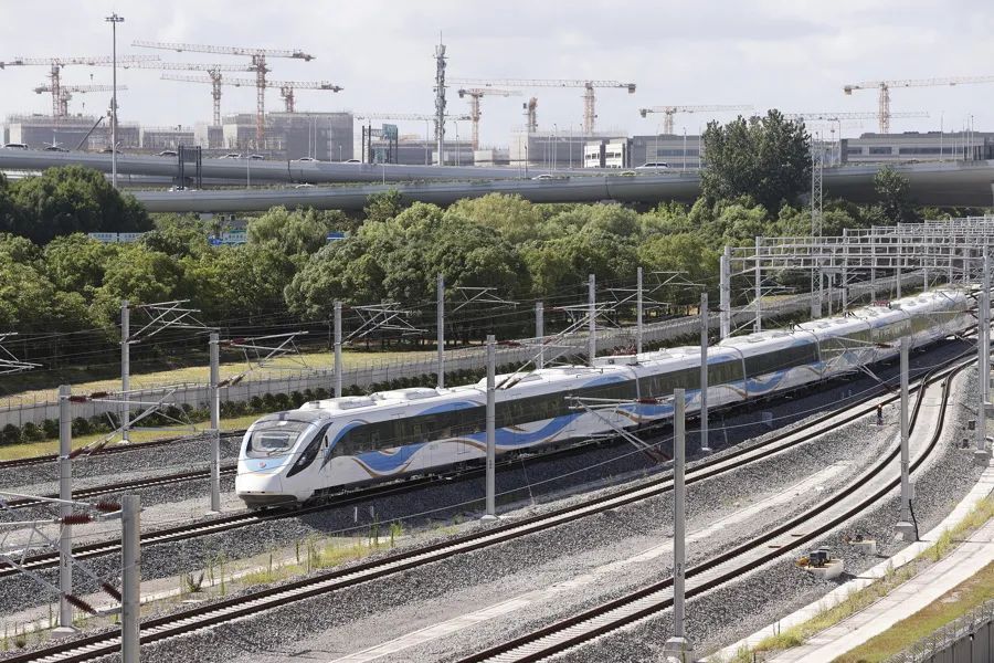 7月24日,上海机场联络线列车进行了上线调试。上海市域铁路机场联络线全长68.6公里,途经闵行、徐汇、浦东新区3个行政区,列车最高运行时速可达160公里。