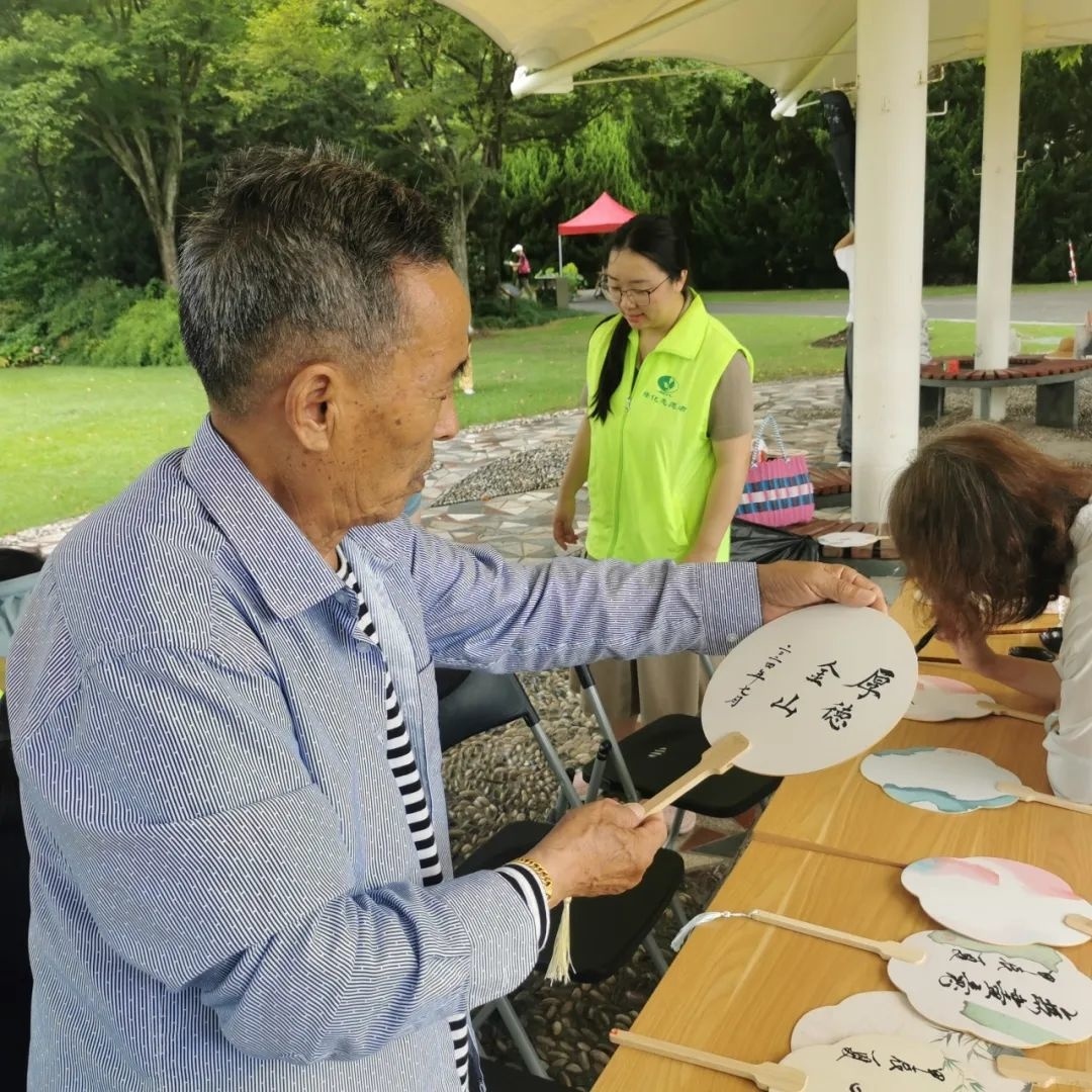 朱昊垚小朋友说:“今天参加荷花节画扇子的活动,我在扇子正面画了福字,背面画了大吉大利,还看到了各式各样的荷花和莲蓬,非常开心。”