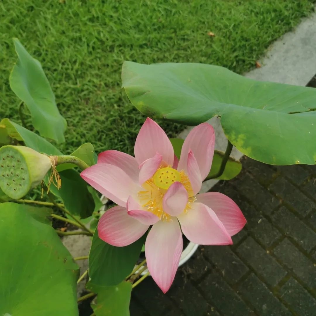 在滨海公园里,荷花铺满整个池塘,碧波绿水映衬着五彩缤纷的荷叶,宛若仙境,与旁边盛开的盆栽荷花,一同吸引了不少市民游客驻足拍照。