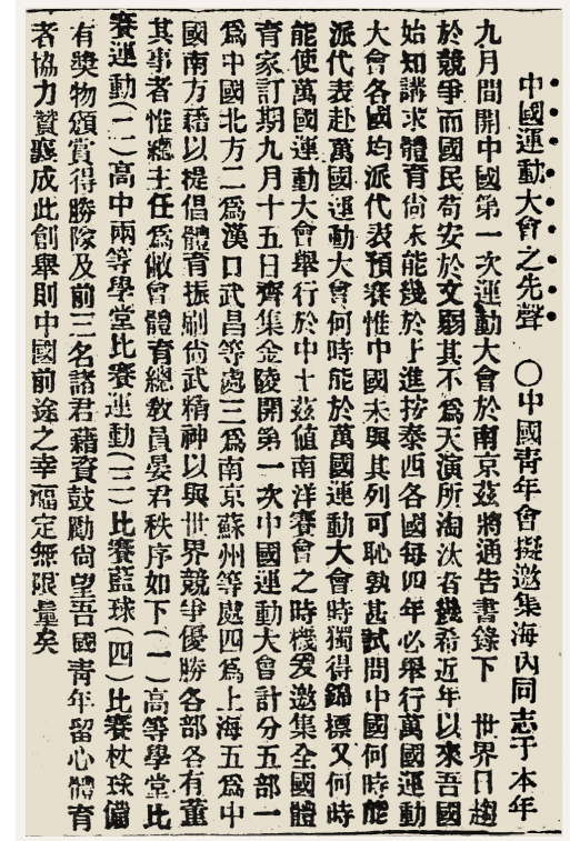 1910年7月17日《申报》刊出《中国运动大会之先声》通告书。
