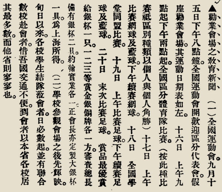 关于南洋劝业会期间举办“第一次全国运动会”的报道。