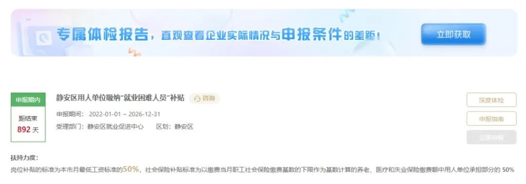 日常与企业的交流中,企业常会反映政策查找不顺畅、政策内容不清晰、政策申报不便捷等情况。静安区从企业的视角出发,梳理惠企政策服务中的堵点难点,以“公开促服务”的理念,在区门户网站开设“政策全流程公开服务”专栏,结合“一网通办”打造了集合预告、查询、体检、咨询、解读、办理的惠企政策一条龙服务模式,帮助企业查、阅、办政策联动起来,最大限度降低企业获取政策、享受政策的难度。