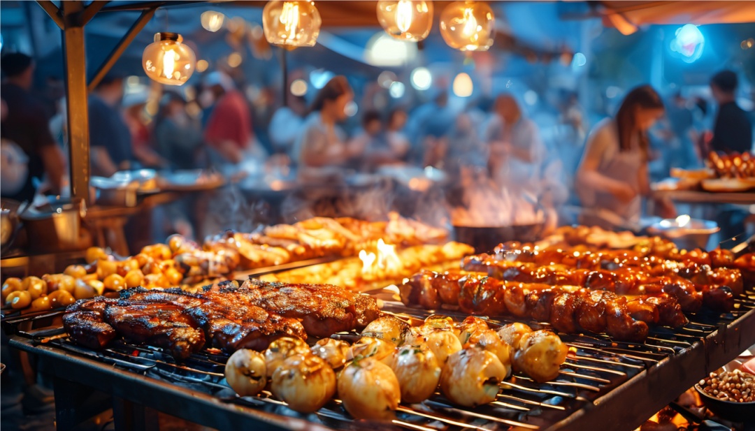 伏羊节夜市集会,自然不能错过一排排香气四溢的美食摊位。鲜嫩多汁的烤羊肉在炭火上滋滋作响,金黄酥脆的炸羊排令人垂涎欲滴。