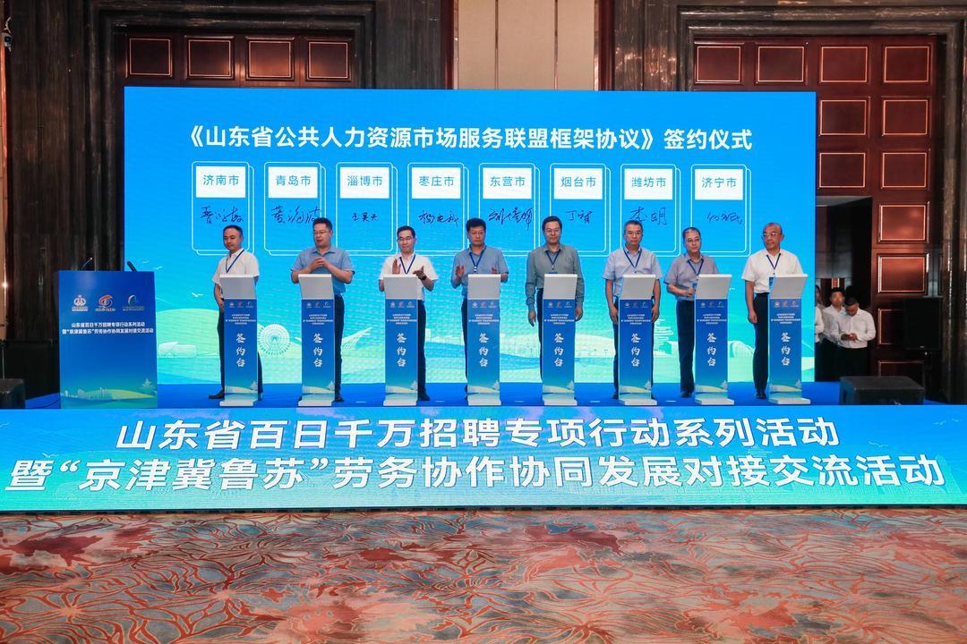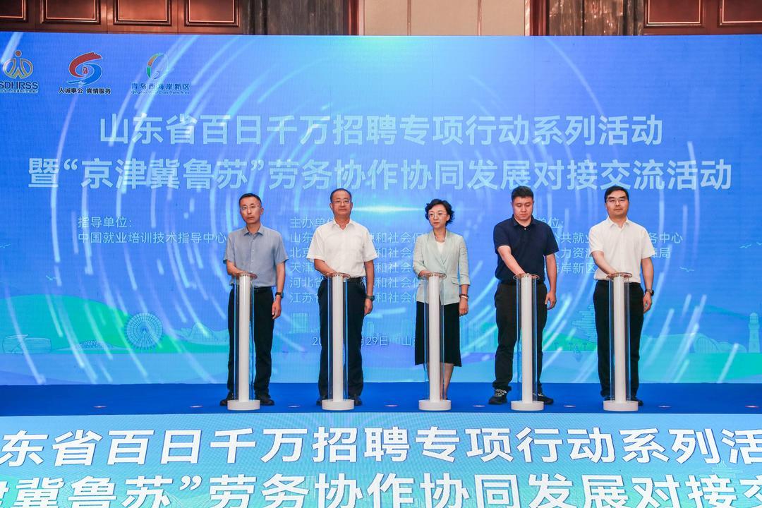 7月29日,由人力资源和社会保障部指导,北京、天津、河北、山东、江苏5省市人力资源和社会保障厅联合主办的“京津冀鲁苏”劳务协作协同发展对接交流活动在青岛举办。活动旨在深入贯彻国家关于促进区域协调发展战略决策部署,加强省际间人力资源的优化配置与高效流动,构建更加开放、协同、共赢的劳务协作新机制,推动区域经济高质量发展。