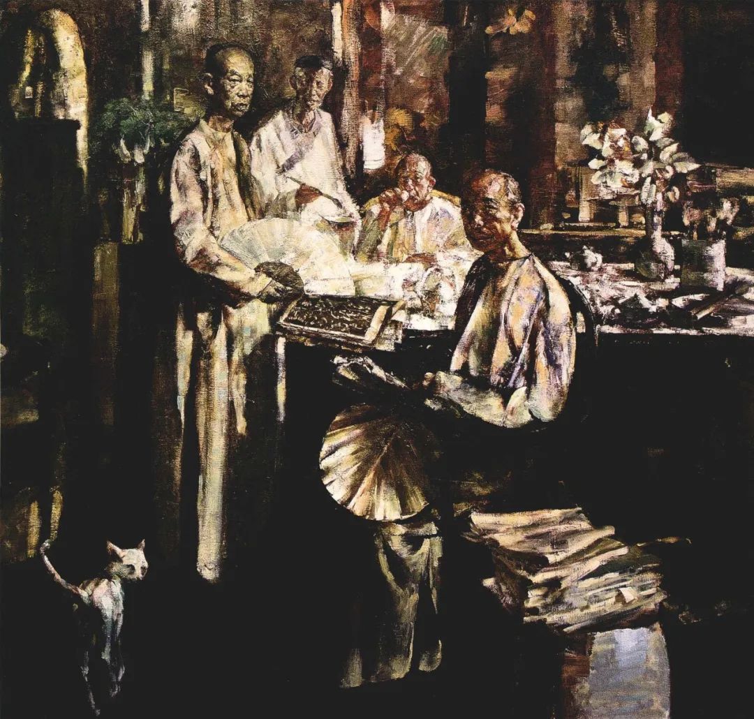 上个世纪80年代早期,当时上海的青年画家俞晓夫创作了一张油画《轻轻地叩门,我来了》。画面中正是吴昌硕等海派名家的画斋聚会。逆光乍现,烟色迷濛,他们正受着某种惊扰,略带惶惑地看向画外。是什么在敲门?正是一个新时代的叩问,一个由半殖民地、半封建社会的急骤变化所催生的东方巨城及其巨大文化转向的叩问。这个时代,上海的传统绘画,面向新生活,改造新笔墨,蕴成了海派绘画写意风雅、清丽纤浓的变革。油画、水彩、素描等西方艺术形态,伴着现代摩登的都市建造,登堂入室,引领现代生活与现代教育,一个文明的千年古国,展开双臂迎接外来的新文化。这传统的变革、新画的植入,内里蕴涵着的是一种与照像摄影、与影像文化一道携手踏来的新的视觉方式和视觉感性。实地写生的方法、多彩的描绘、明暗而立体的刻划,带着身入其境的真实之感,借着大都会的光环,将万物从日常的掩蔽状态中照亮。油画从上海出发,首先源自于现代东方都市文化的觉醒,源于东方巨城文化的巨大的融合与化生的叩门之声。李铁夫先生、李叔同先生、刘海粟先生、颜文樑先生,他们是留学精英、开创中国美术教育新篇章的扎根开枝的代表。他们的艺术篇幅都不大,虽不是巨构,却依然嗟其出群,在历史上显现出开拓者和先驱者的力量。