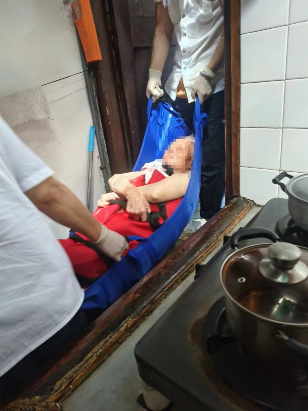 独居老人朱德福已是鲐背之年,听到老人在求救,朱德祥立刻破门而入,四处寻找后在卫生间发现了摔倒在地的老人。朱德祥第一时间询问了老人的情况,是否有头晕头痛身体局部异样等症状,然后立马联系了居委,居委工作人员则立刻拨打了“120”并赶到现场。按照“120”接线员的提醒,朱德祥还协助居委工作人员将老人扶起坐好,直至“120”的到来。