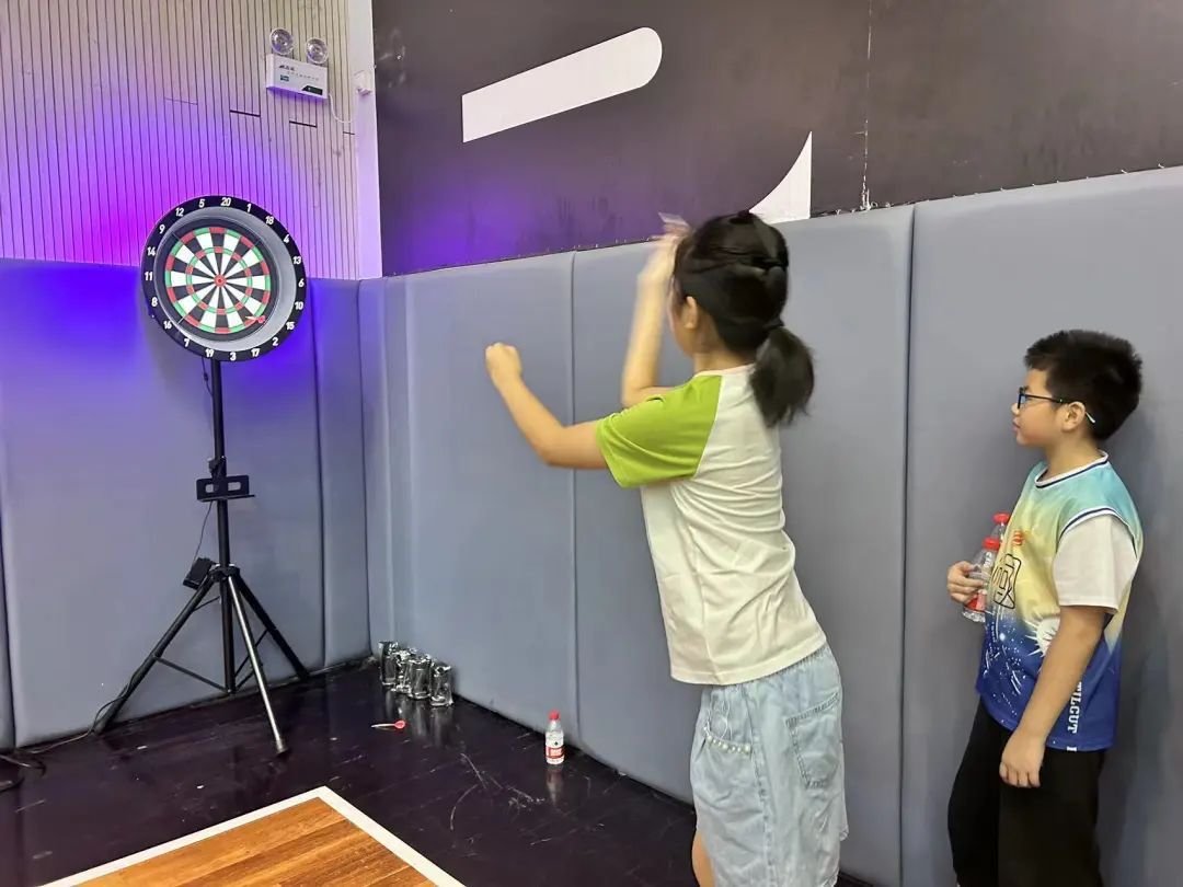 陆晶今年11岁,虽然是第一次参加飞镖竞技,但是她快速掌握了要领。她表示:“每次我们投到的位置都不一样,所以这个力度需要控制好,高度需要是一个抛物线。”