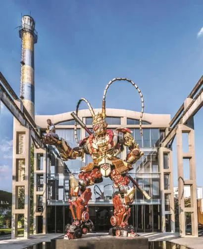 威武的“齐天大圣”雕塑,试与楼宇比高。