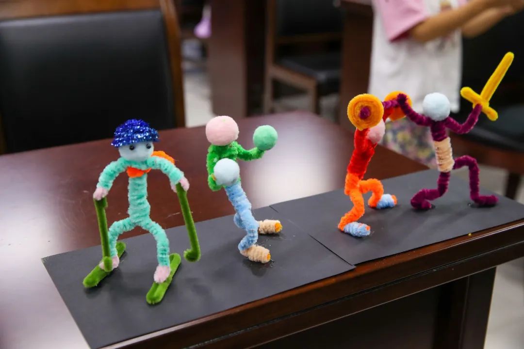 活动现场,在手工老师的指导下,孩子们拿起色彩斑斓的扭扭棒,制作出了形态各异的奥运小将。这些小将或矫健有力,或灵动可爱,孩子们的脸上洋溢出开心的笑容。