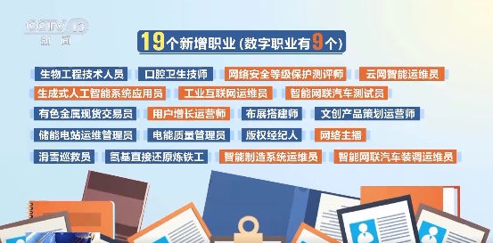 如紧跟前沿技术的“数”“智”职业:生成式人工智能系统应用员、智能网联汽车测试员、智能制造系统运维员、工业互联网运维员等;数字经济孕育的全新岗位:网络主播、用户增长运营师等。