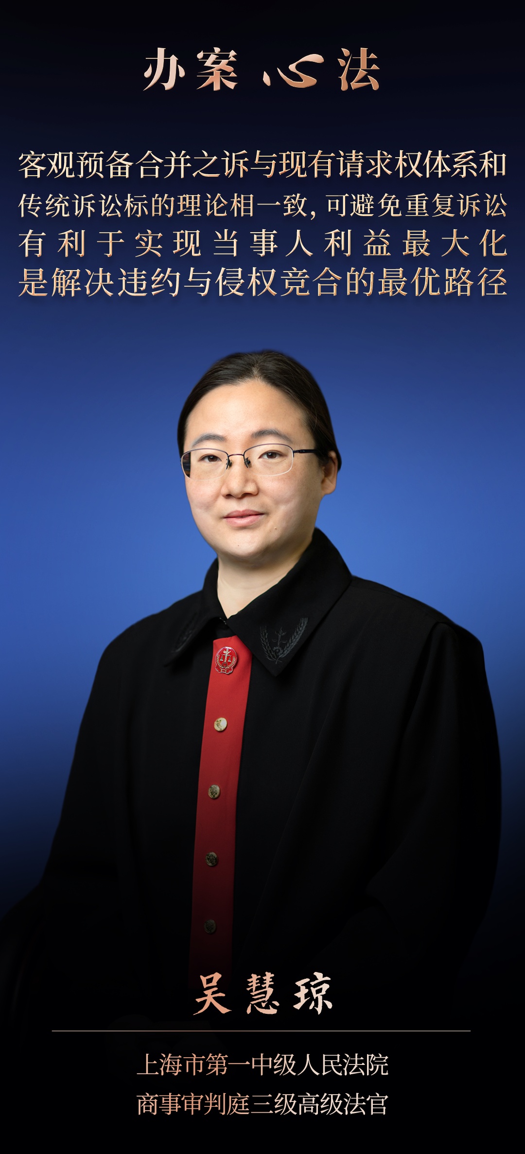 本期“办案心法”栏目“上海法院审判业务骨干”特别专题,邀请上海法院审判业务骨干、上海市第一中级人民法院商事审判庭三级高级法官——吴慧琼为我们分享客观预备合并之诉的实务探索。