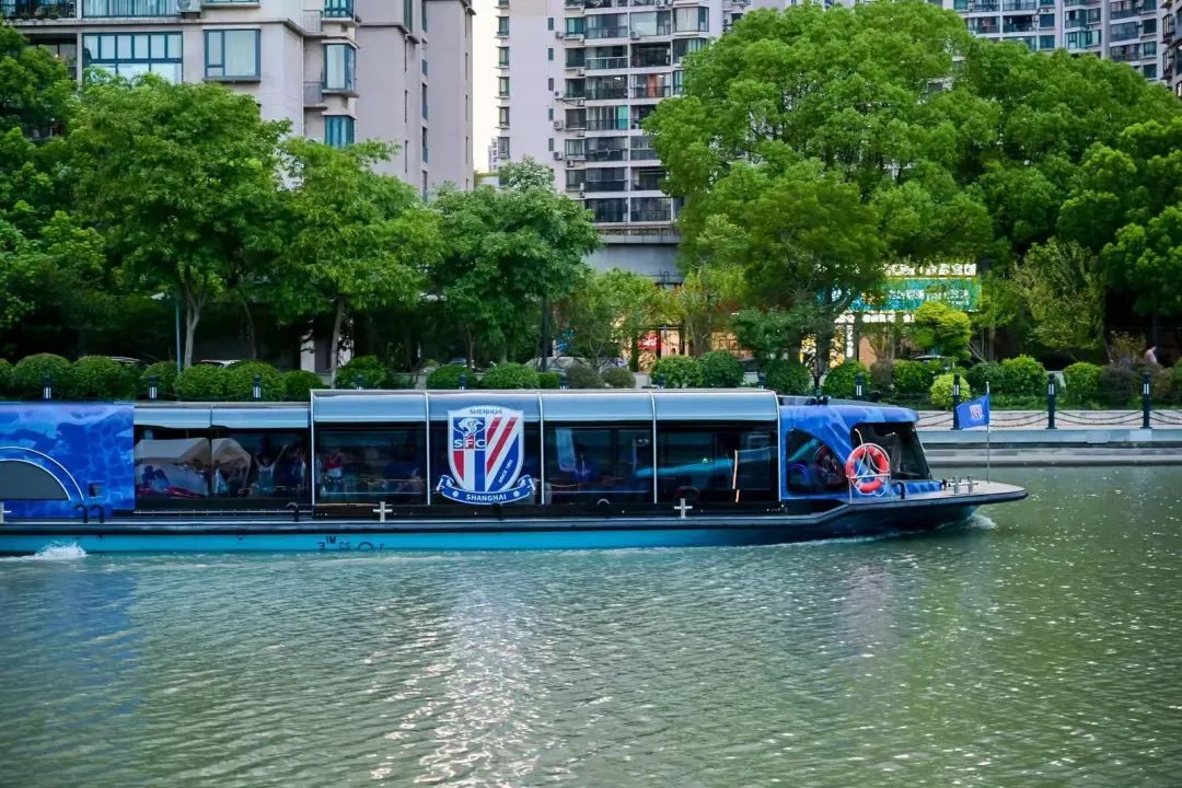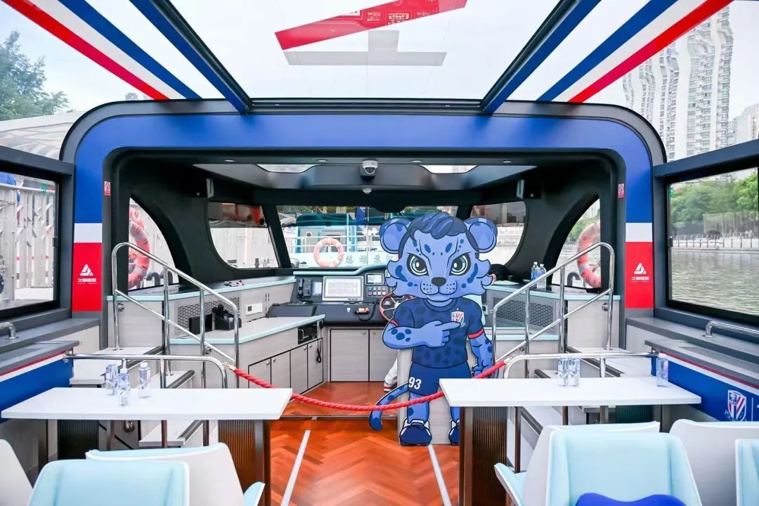 发布会现场,久事旅游还与上海申花足球俱乐部推出联名船模。在苏州河新游船优雅造型的基础上,巧妙融入了申花元素。它采用了3D打印技术和UV贴纸工艺,将申花的品牌精神与现代科技完美融合。这艘船模不仅是对上海申花足球文化的致敬,更是对城市文化生活的创新贡献。