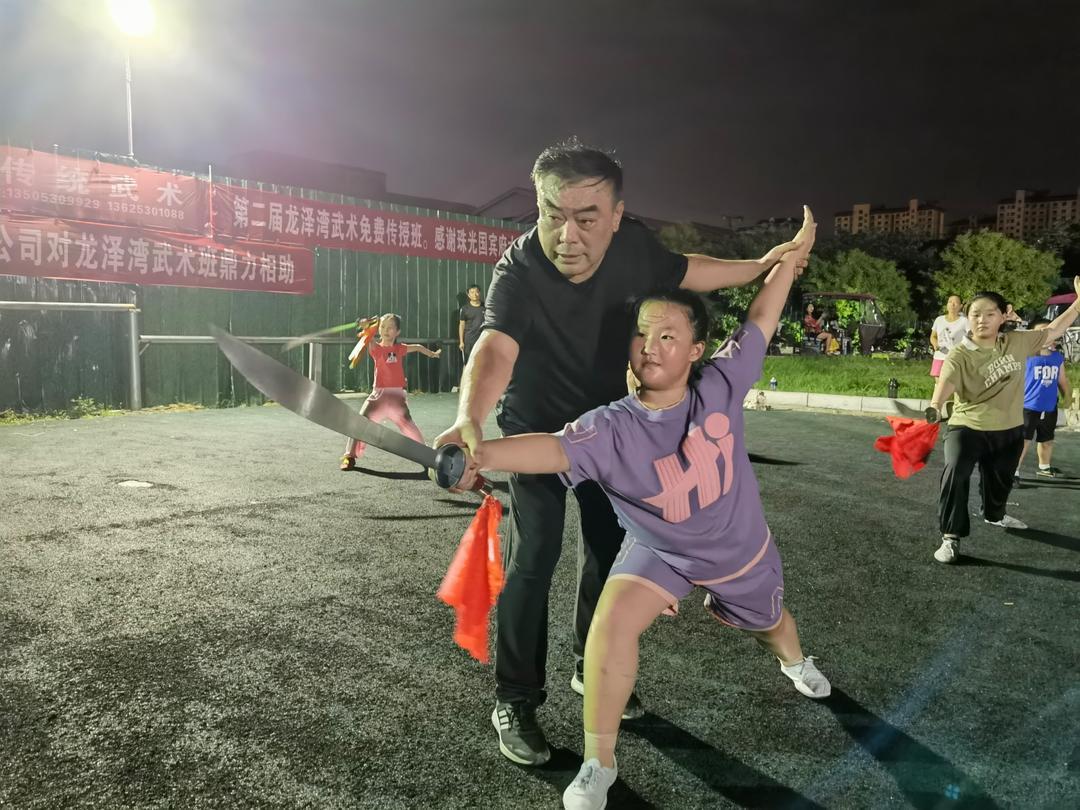 这一场景在小区已经持续了一年多,现如今,“龙泽湾小区有个免费武术班”已经成了小区及周边居民饭后闲聊时躲不开的话题。“去年7月11日,开始的第一堂课,前期在小区业主群里发通知,免费教武术,5到18岁的孩子只要愿意来,都可以报名,这一年多除去雨雪天气,基本没停过,每天早晨、晚上各练1个半小时到2个小时,长期坚持的有40多人,流水学习的差不多200人。”免费武术班的发起人刘青山介绍说。