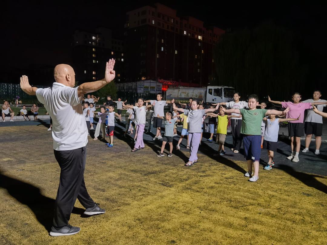 看着孩子在广场上踢腿、冲拳,小区居民张建伟坐在一旁,时不时用手机拍摄记录。“我两个孩子都是武术班的学员,这个武术班除了锻炼身体,还能磨练心志,特别是在暑假期间,真的‘太香了’。”