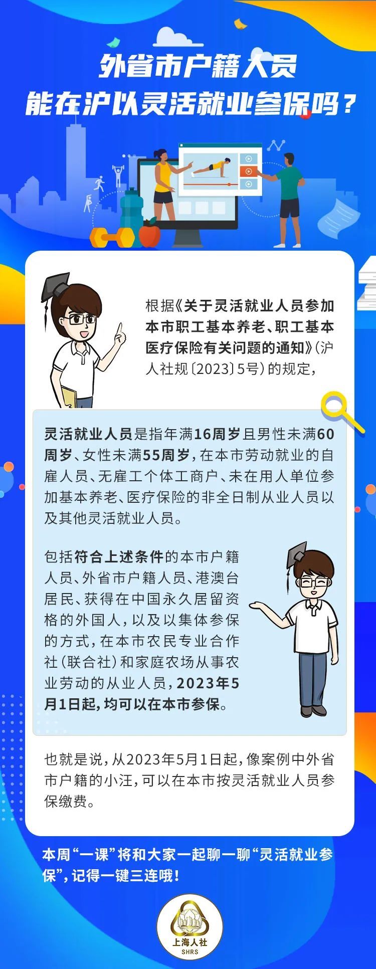 外省市户籍人员能在沪以灵活就业参保吗?一起来看案例~每天上一课轻松学政策32岁的小汪学美术出身,之前一直在一家设计公司工作。去年离职后,一时也没有找到工作的小汪在街道工作人员的推荐下,来到社区教市民学画画,几个月下来已经有了相对固定的收入来源,就想着是否要给自己缴上社保。小汪是外省市户籍人员,可以在上海以灵活就业参保吗?来听听仁仁博士怎么说。