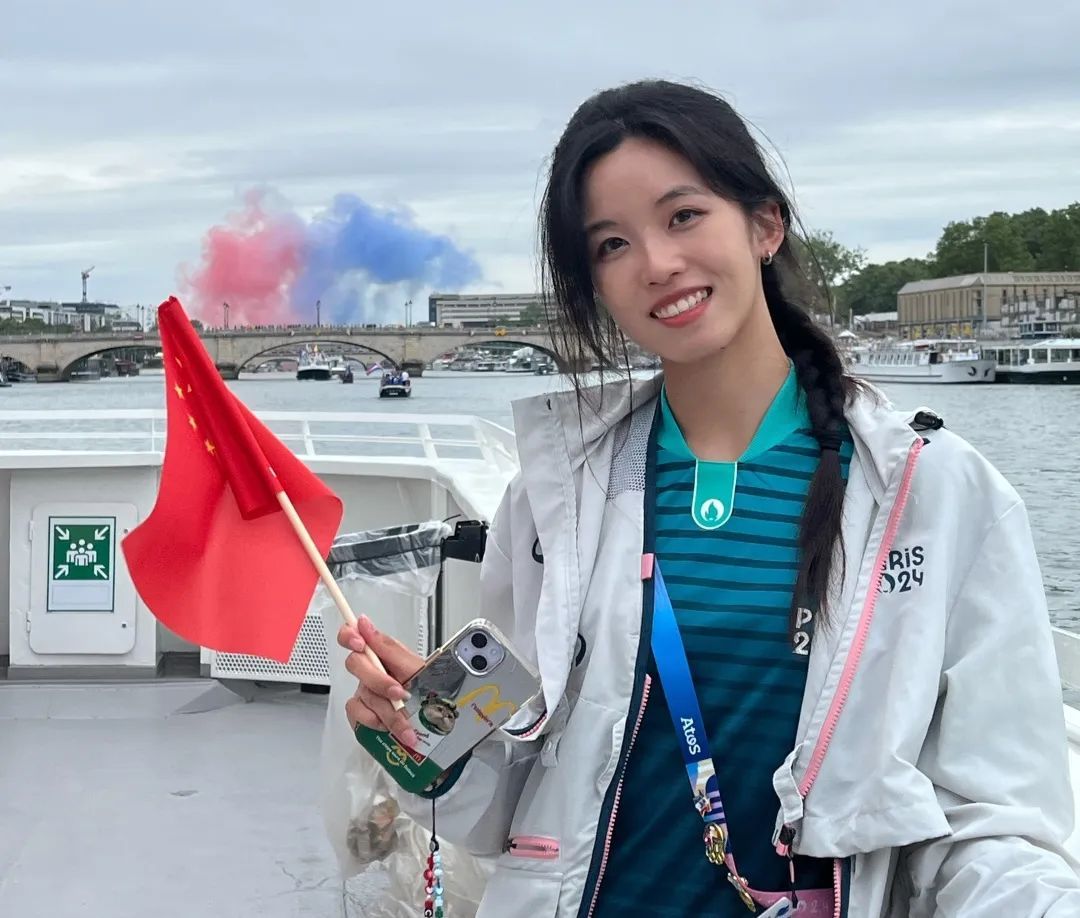 她朋友圈里置顶的,是巴黎奥运开幕式那天自己“人品爆棚”的经历——那一天,许婧怡被随机分配到了中国体育代表团队所乘坐的16号船上,并成为了中国队的引导志愿者。
